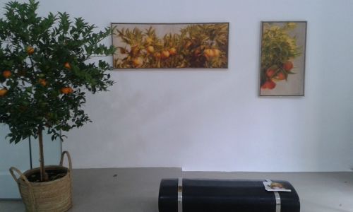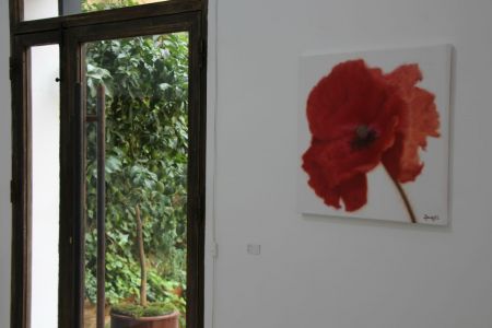 Para convertir una pintura en un estado de ánimo, para conseguir elevar la parte al rango del todo, para trascender de un dibujo a una comunión esencial, hace falta talento, inspiración, mucho trabajo y, sobre todo, una técnica maestra de ejecución. ¿Cómo podemos pasar de la parte al todo? Pues estas pinturas parecen usar del fractal para conseguirlo. El fractal es un objeto geométrico cuya estructura se repite para formar realidades más complejas. Ha sido preciso el novísimo desarrollo del aparato matemático y conceptual de la física cuántica para descubrir las leyes que aúnan lo pequeño – el fractal – con la realidad visible que conforman. Florinda consigue un universo fractal con sus hojas de naranjo, en su gama de verdes y amarillos. Enmarañadas en ocasiones, simplemente revueltas en otras, apoyadas entre sí, solas, sus hojas se repiten hasta construir un naranjo, hasta evocar a todos los naranjos que en el mundo son. De la simple hoja, al concepto completo del naranjo. El estilo de Florinda López tiene una gran personalidad, con formas y modos propios. Una pintura realista que va mucho más allá de los realismos tan en boga actualmente. La pintura de Florinda López matiza la realidad para reforzar la evocación que encierra. No aspira a reproducir fidedignamente aquello que observa, sino que, por elevación, intenta que entendamos, que participemos en su alma ancestral, que todos nuestros sentidos comulguen al unísono en la partitura de su evocación esencial. Si nos acercamos al cuadro, comprobaremos con asombro cómo el trazo suelto, breve, sin perfilar, desdibuja la nitidez observada desde cierta distancia. Florinda López cubre con la delicada muselina de su pintura los duros trazos de la realidad. Por eso, por ejemplo, podemos acariciar con nuestra mirada el terciopelo cromático de sus begonias, podemos navegar Nilo abajo con el horizonte de sus riberas o acariciar la roja amapola antes de deshojarla.